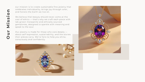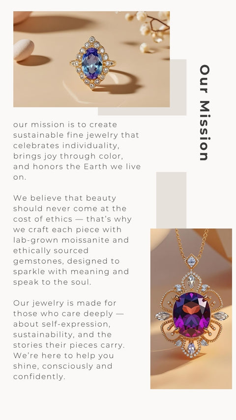 We create timeless pieces using lab-grown moissanite and colorful gemstones — offering brilliance without compromise. From everyday sparkle to meaningful gifts, each piece is crafted with care, intention, and a deep respect for the Earth.